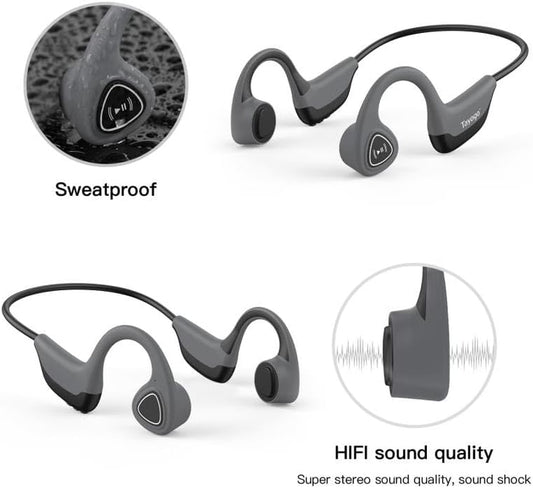 Bone Conduction Headphones, Wireless Bluetooth Bone Conducting Earbuds, Open Ear Headset with Mic, for Running, Cycling, Yoga-Grey (Almost Like-New)